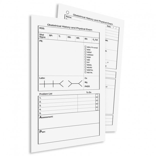 Preformatted double-sided cards to obtain a great OBGYN history and physical exams. Compact pocket design and preformatted areas, make these H&P cards easy to use on your daily routine.